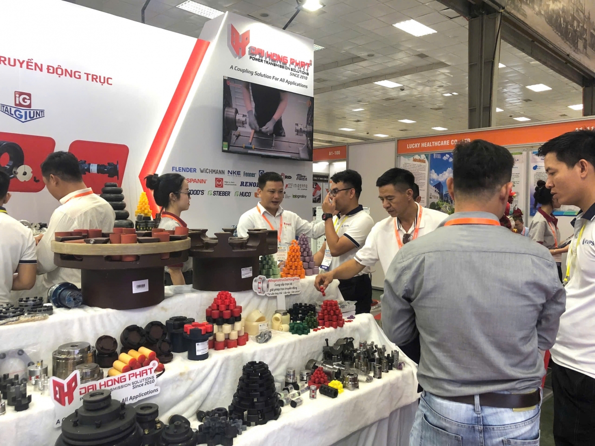 Tại gian hàng trưng bày, Đại Hồng Phát giới thiệu loạt giải pháp truyền động công nghiệp bao gồm: khớp nối trục, khớp khóa trục, thiết bị bóp trục, lò xo ma sát, vòng bi và dụng cụ cầm tay chuyên dụng.