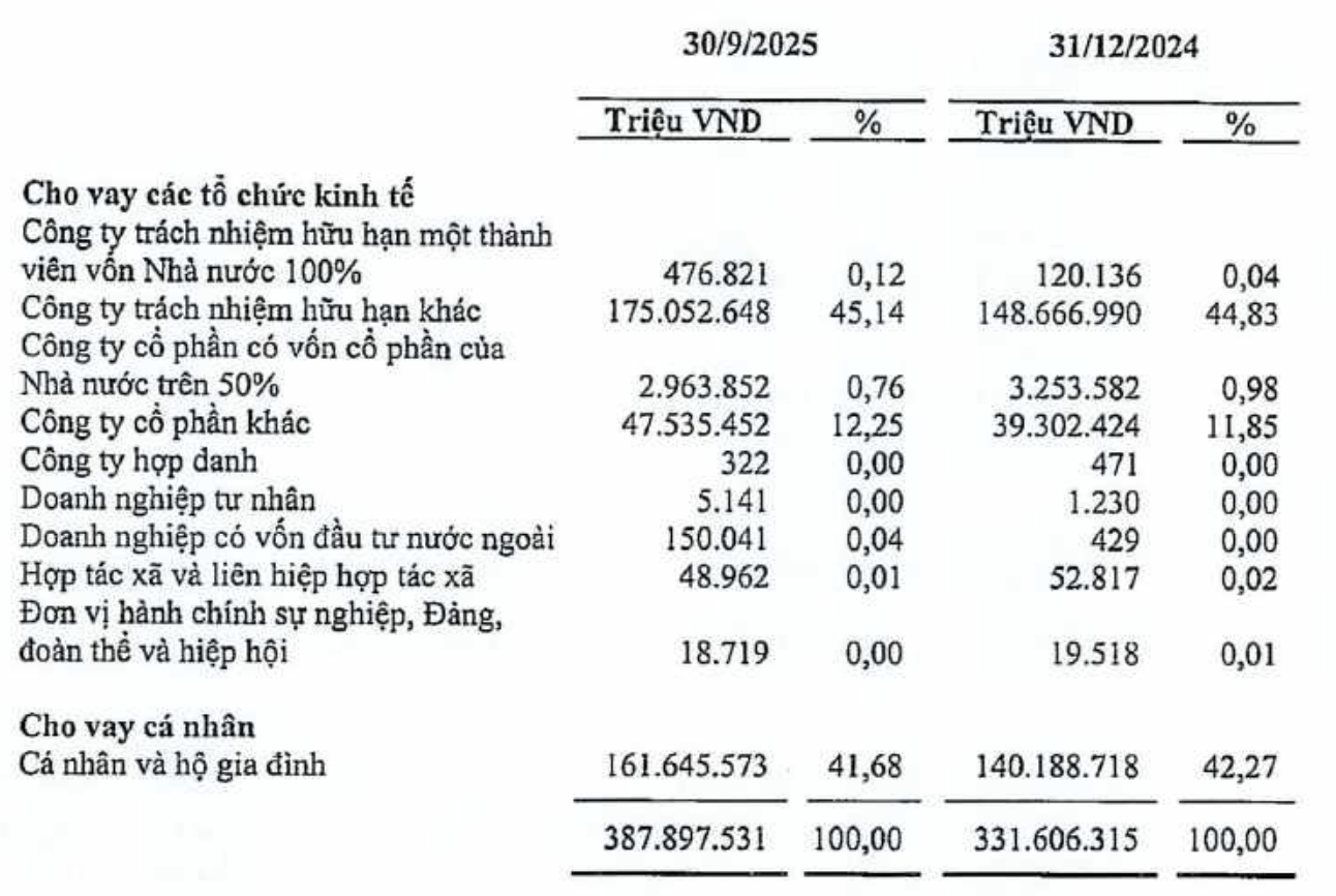 Tính đến 30/09/2025, tổng tài sản của LPBank đạt 539.149 tỷ đồng, tăng 18,3% so với cùng kỳ và hơn gấp đôi trong 4 năm. Ở mảng cốt lõi, dư nợ tín dụng đạt 387.898 tỷ đồng, tăng 17% so với đầu năm; huy động vốn đạt 389.638 tỷ đồng, tăng 15%, đảm bảo nguồn lực cho tăng trưởng tín dụng, đồng thời tối ưu cân đối kỳ hạn và chi phí vốn.