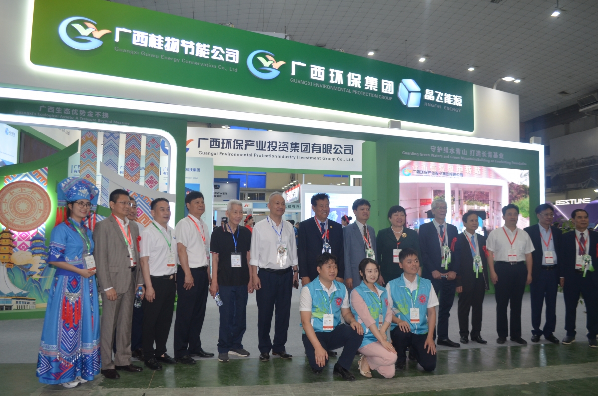 | Đoàn đại biểu 2 nước đi thăm gian hàng của Tập đoàn đầu tư Công nghiệp và Bảo vệ môi trường Quảng Tây (Ảnh: Nguyễn Hạnh) |